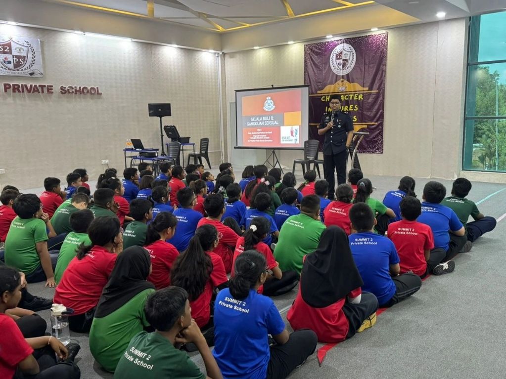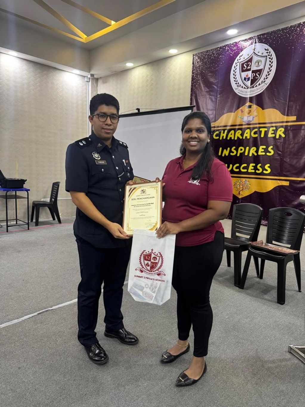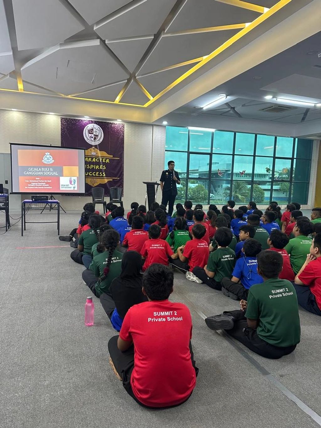 Our Students engaged in an insightful session with out esteemed guest, Inspector Muhammad Farhan Bin Rosli from IPD Seremban, guiding our students on bullying, discipline, cyber crime, and staying alert and wary of the current issues.